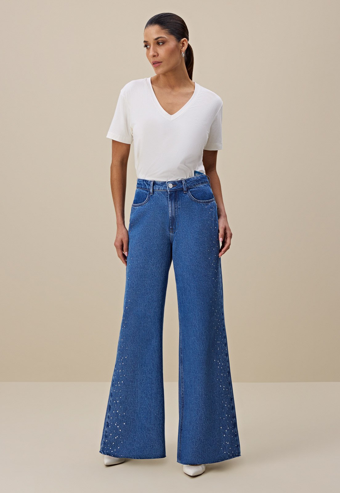 • Calça Feminina Amsterdam New Flare com Cintura Alta Petit - IDX20129